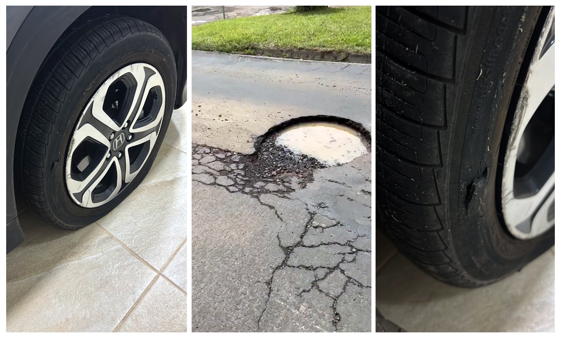 Por fim, disse que entrou em contato com a prefeitura e fez o mesmo relato, agora espera que as autoridades competentes resolvam o problema. “Não sou apenas eu que sofro com as péssimas condições do asfalto, infelizmente tive meu pneu furado, mas nada ocorreu de grave, fico apenas imaginando se isso ocorrer com um motociclista, o que pode acontecer”, concluiu.