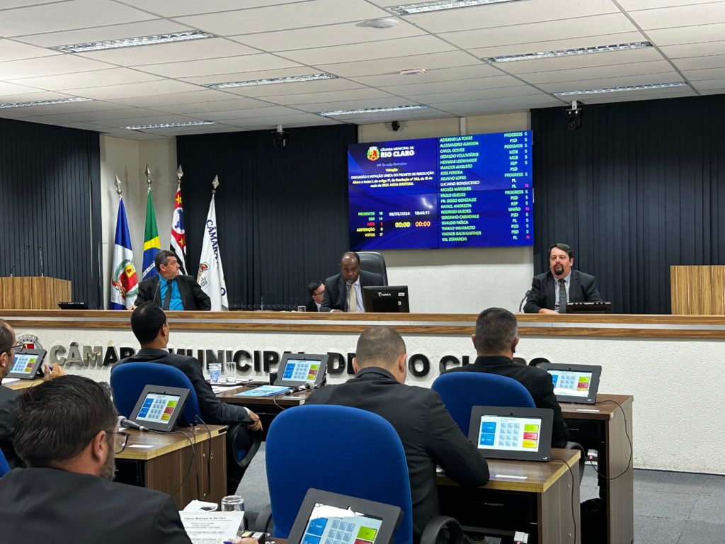 A Câmara Municipal de Rio Claro aprovou na noite dessa segunda-feira (6) o projeto de resolução da Mesa Diretora, composta pelo presidente José Pereira (PSD), e secretários Adriano La Torre (PP) e Hernani Leonhardt (MDB), que vai fixar, por fim, em R$ 16.500,00 o subsídio pago mensalmente aos vereadores a partir de 2025 e assim seguirá até 2028.