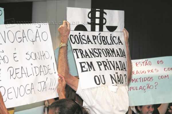 Seis projetos constaram da pauta da Ordem do Dia durante a sessão da Câmara da última segunda-feira (5). Os vereadores destacaram primeiramente os requerimentos e, em seguida, teve início a votação das matérias. Mais uma vez os manifestantes que reivindicam a revogação da Taxa de Iluminação marcaram presença na Casa de Leis. Outras demandas também puderam ser vistas acrescidas nos cartazes costumeiros no terceiro andar do Paço, inclusive, adesivos com os dizeres “Pede pra sair prefeito Du Altimari” foram distribuídos.