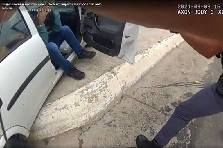 “A imagem 8, a mais contundente, ilustra o momento em que o civil Vinícius [Gomes] desembarca do veículo GM/Corsa com as duas mãos na cabeça, rendido, desarmado, sendo que, neste instante, o sargento Inácio dá início aos disparos”, diz trecho do relatório apontando um dos frames de vídeo anexado ao relatório.