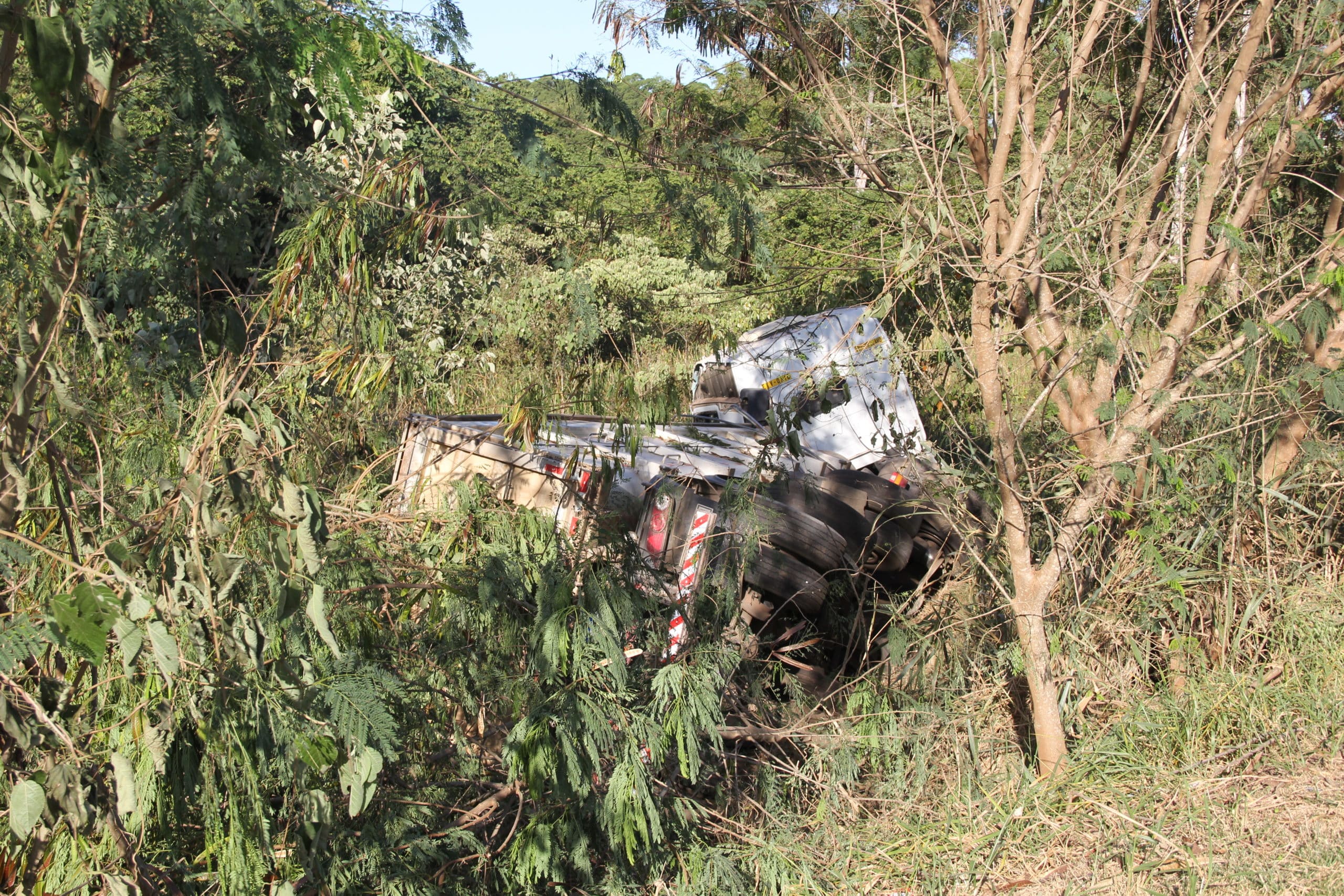 Um motorista perdeu o controle de seu caminhão e caiu com o veículo em um barranco às margens da Rodovia Constante Peruchi, que liga as cidades de Rio Claro e Santa Gertrudes.