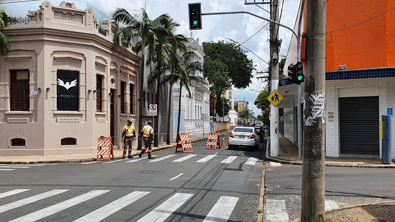 Agentes de trânsito precisaram interditar no início da tarde desta quarta-feira (16), uma das faixas da Avenida 5 entre as Ruas 5 e 6, na área central.