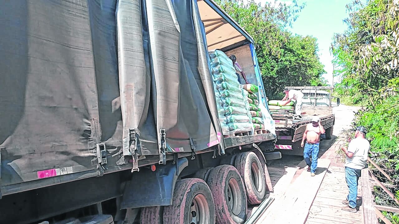 A remoção só foi possível na tarde de ontem, quarta-feira (8), após a Defesa Civil montar uma operação com a Secretaria de Obras que enviou máquinas até o local. Primeiro a carga de sacos de fécula de batata foi toda retirada para o caminhão ficar mais leve e na sequência as máquinas conseguiram tirá-lo da ponte.