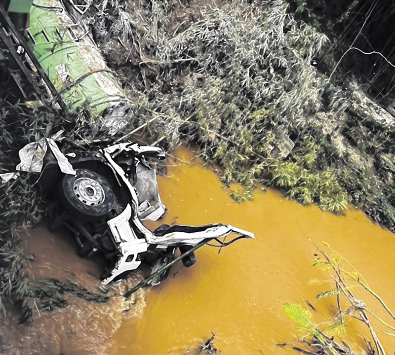 Já o passageiro de 20 anos sobreviveu com ferimentos e relatou à Polícia Militar que o acidente aconteceu após o caminhão perder os freios quando passava pela estrada Angelico Vianna, bem na ponte. Na ocasião Corpo de Bombeiros e PM atuaram na ocorrência.
