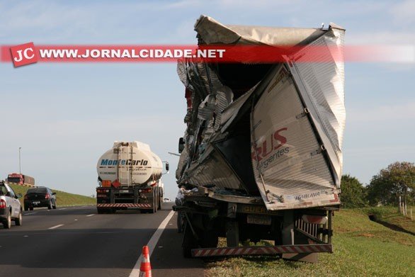 Um acidente entre dois caminhões na Washington Luís aconteceu por volta das 5h30 desta quarta-feira (30), próximo do posto da Polícia Rodoviária.