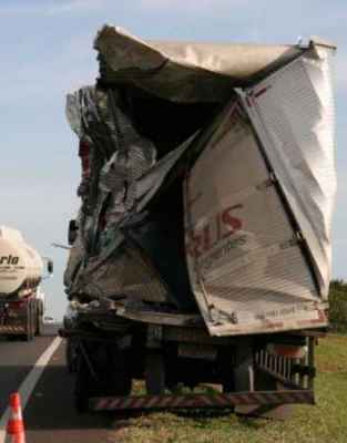 Ambos seguiam sentido interior quando o caminhão da frente parou de funcionar na subida devido ao sistema de bloqueio eletrônico, e o veículo que vinha atrás não conseguiu frear a tempo.