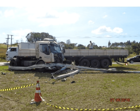 Caminhoneiro tem mal súbito e colide contra defensa metálica na SP-191