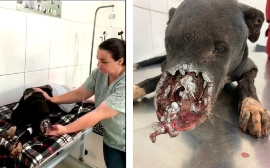 “O animal teve uma dilaceração na face que pegou desde a parte respiratória, enfim toda a narina. Fiz uma primeira cirurgia reparadora mas acredito que o cachorro terá que ficar no mínimo entre 30 a 40 dias conosco”, disse a Dra Daniela Silva que prontamente se disponibilizou a ajudar is dinos do animal que estavam desesperados com a situação.