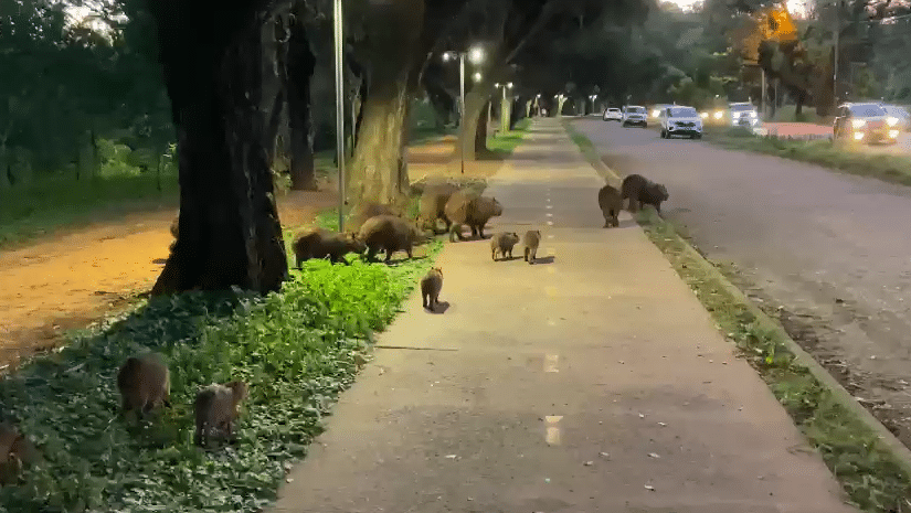 O leitor Allan Vitti (@umatalpiracicaba), de Piracicaba, fez um registro interessante na cidade vizinha a Rio Claro. Passeando pela movimentada Rua do Porto no último domingo (13), ele foi surpreendido por várias famílias de capivaras.