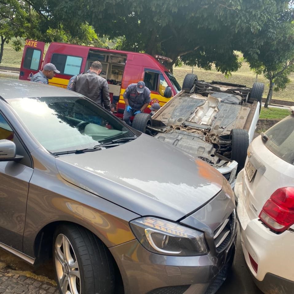 De acordo com o Corpo de Bombeiros, o condutor perdeu o controle do veículo e acabou acertando outros dois carros parados.