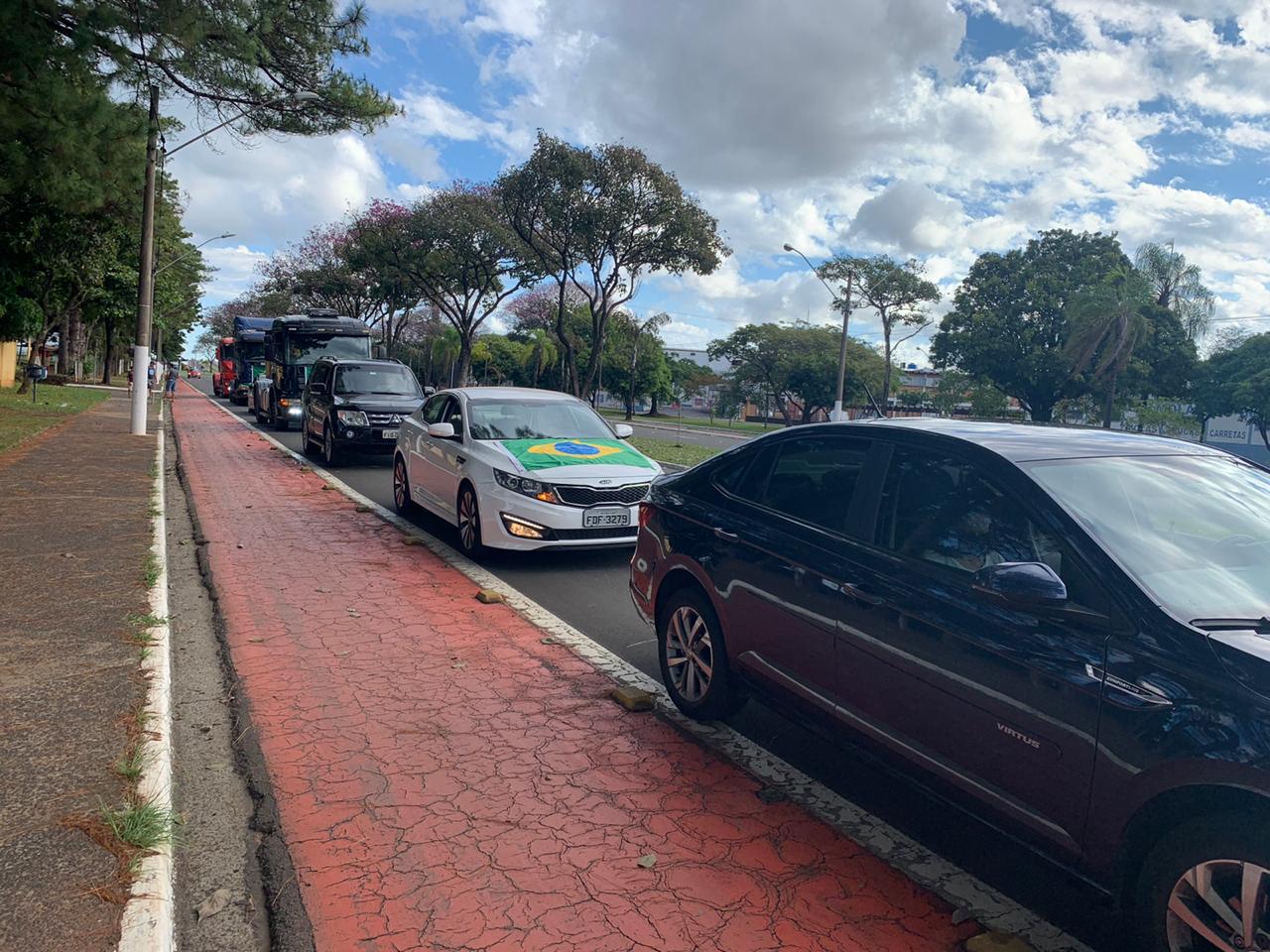 A carreata com cerca de 40 veiculos foi encerrada em frente à sede do Tiro de Guerra, que simboliza o pleito às FFAA para que atuem .
