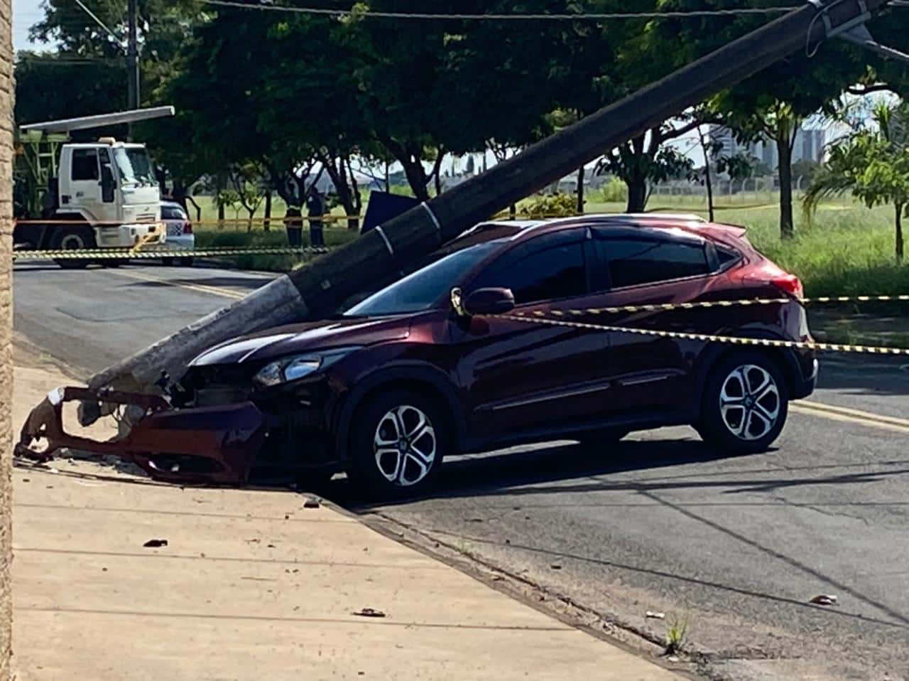 Logo cedo, um carro acabou colidindo contra um poste de iluminação pública na Avenida Marginal 1, esquina com a Avenida 57. Não há informações sobre a causa do acidente.