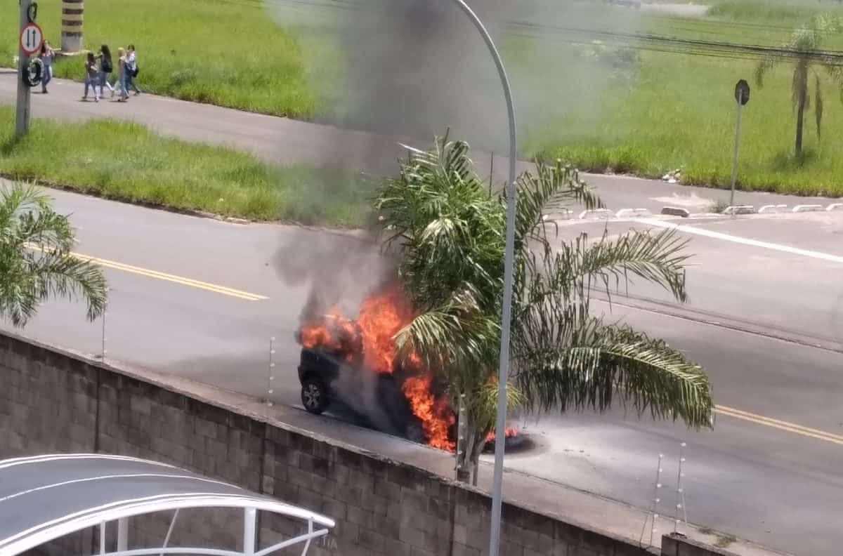 O veículo estava estacionado em frente a um condomínio de prédios quando foi atingido pelas chamas.