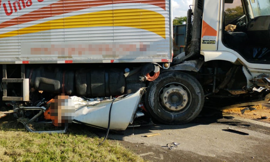 Equipes da Polícia Militar Rodoviária orientam o trânsito na pista que está com a faixa 2 interditada e profissionais do Corpo de Bombeiros de Rio Claro trabalham para a retirada do motorista que veio a óbito no local e que está preso nas ferragens. Não é possível ainda saber se existiam mais pessoas junto no veículo já que ele está totalmente embaixo do caminhão.