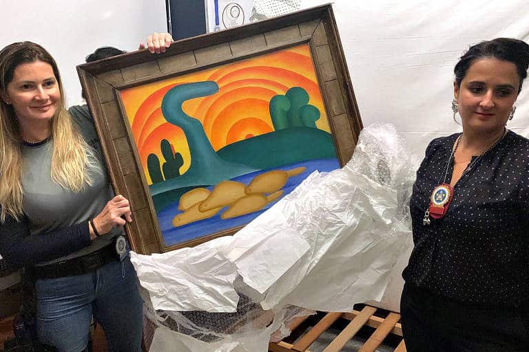 Geniviève foi vítima de roubo e levou um ano até denunciar a própria filha. Ela é viúva do colecionador e marchand Jean Boghici. Entre os quadros recuperados na operação desta quarta é “Sol poente” (1929), de Tarsila do Amaral.