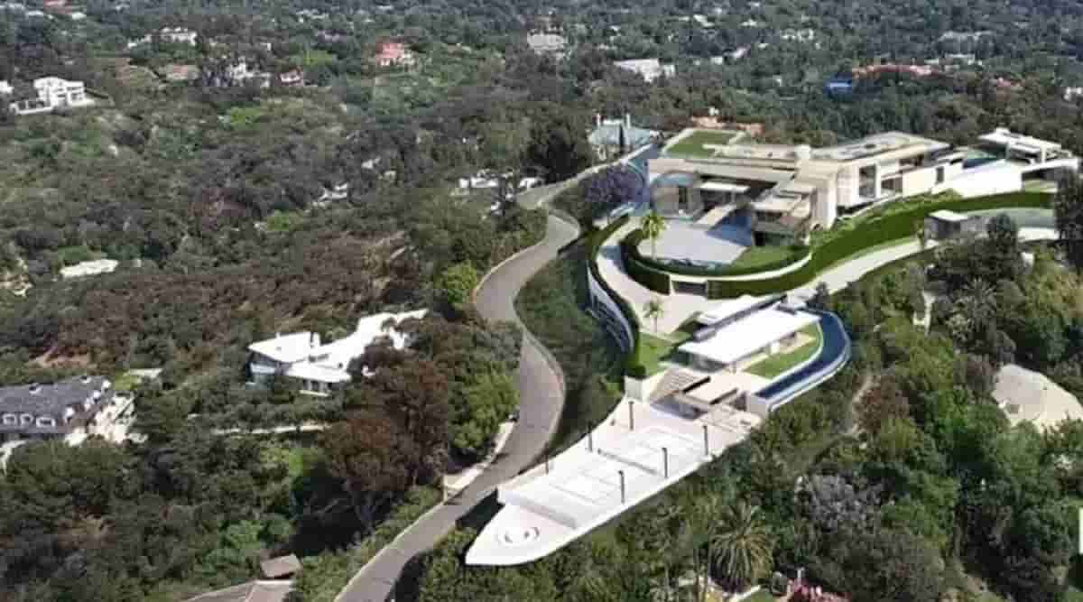 A casa foi construída em um terreno de 40 mil metros quadrados, e tem vista de 360º. De cima da mansão, é possível ver o Oceano Pacífico, o centro de Los Angeles e a cordilheira de San Gabriel. O imóvel tem 20 quartos, e o maior dele mede 510 metros quadrados.