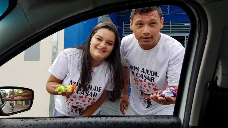 Foi aí que tiveram a ideia de ganhar um dinheiro extra com a venda de trufas. O local escolhido foram os semáforos da cidade. Fizeram camisetas personalizadas com o dizer: “Nos ajude a casar” e com muita humildade, um sorriso no rosto e amor comercializam o sonho e compartilham a história com os motoristas, principalmente os que passam pelo cruzamento da Rua 14 com a Avenida Visconde, local que escolheram pelo grande fluxo de veículos.