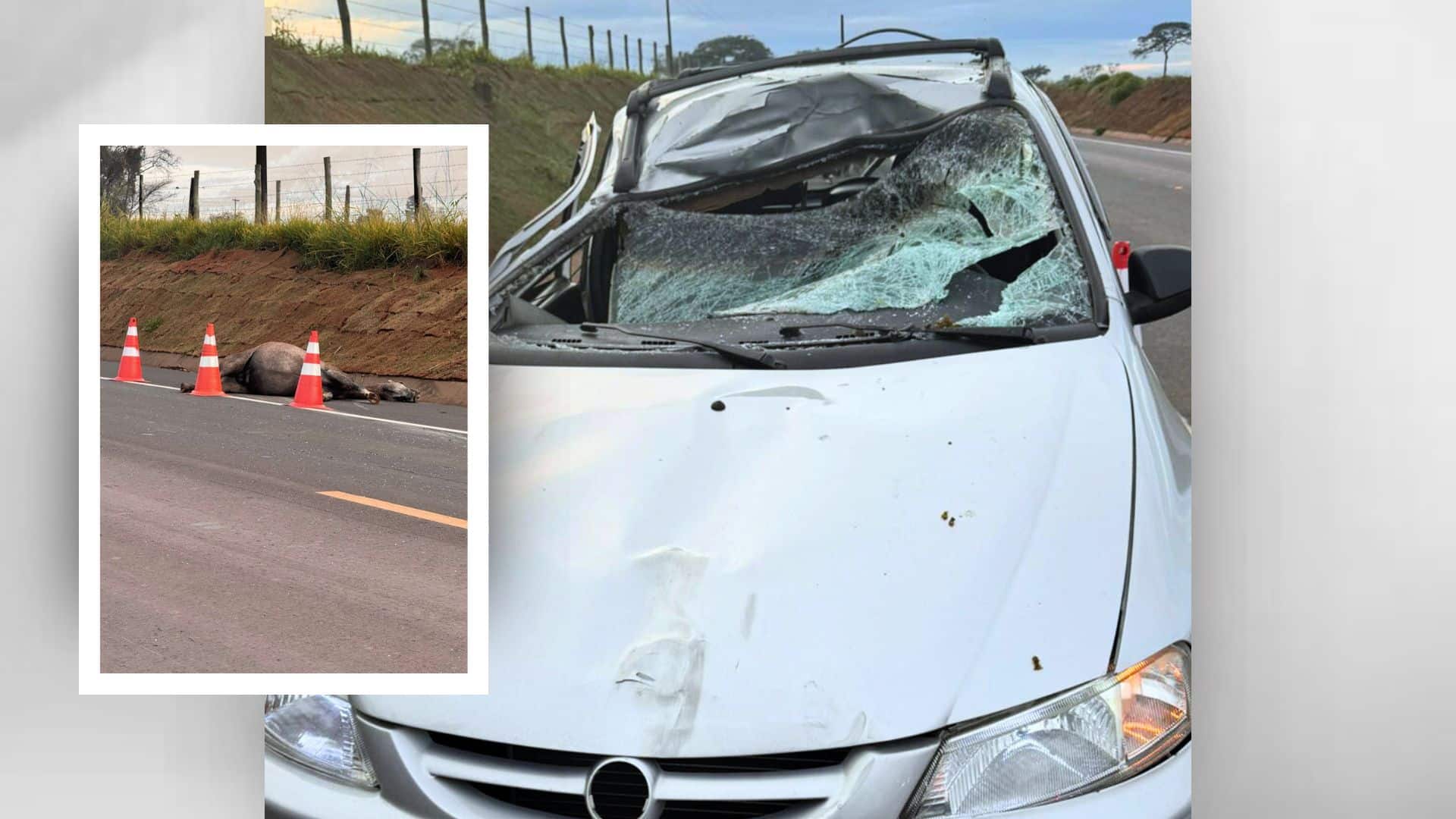 Colisão ocorreu na manhã desta sexta (6) na via que liga ao bairro à SP-191. Passageiros sofreram ferimentos leves; concessionária Eixo-SP removeu o animal