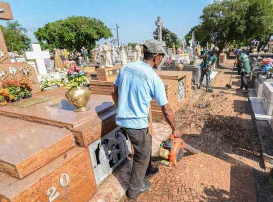 “A limpeza que é feita diariamente está recebendo reforço também na área externa”, esclarece Natanael Soares de Carvalho, o “Peixe”, gerente do cemitério, informando que equipe do programa Nova Vida participa da ação. O “Nova Vida” é uma iniciativa da prefeitura que emprega pessoas em situação de vulnerabilidade social.