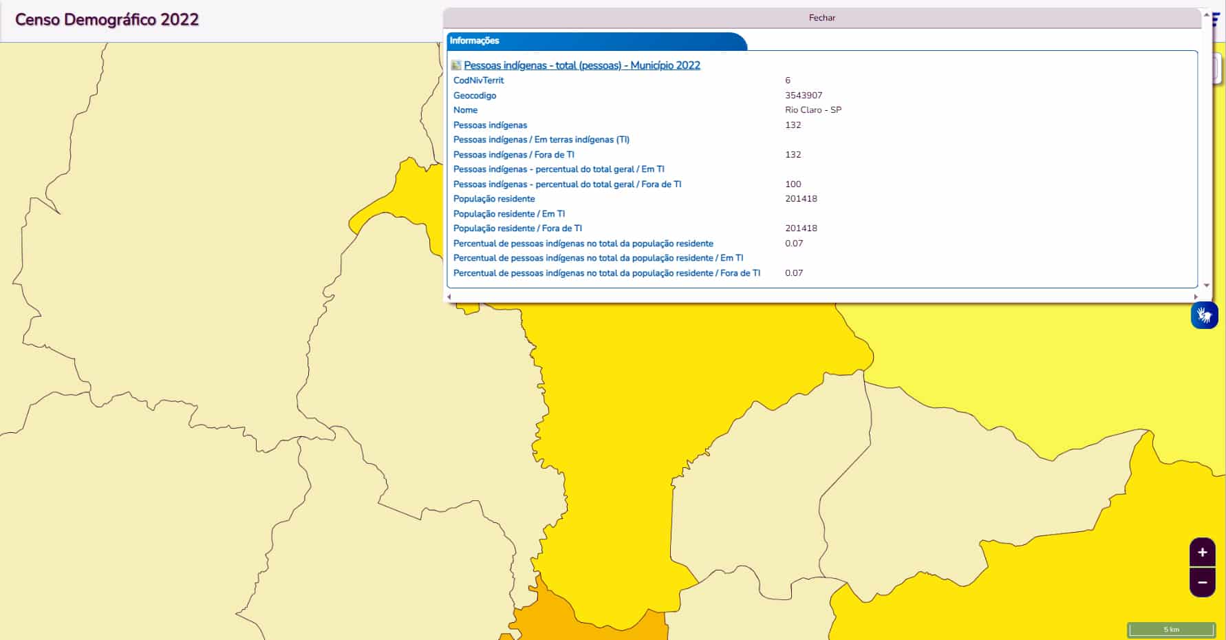 O Censo Demográfico 2022 mostrou que 1.693.535 pessoas se declaram indígenas no Brasil, correspondendo a 0,83% da população residente do país, distribuídas por 4.832 municípios. Os dados do Censo 2022 Indígenas: Primeiros resultados foram divulgados nesta segunda-feira (7) pelo Instituto Brasileiro de Geografia e Estatística (IBGE).