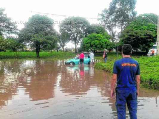 Embora tenha sido rápida, a chuva foi suficiente para transbordar o Córrego Wenzel, na região do Jardim São Paulo. Com o transbordamento do córrego, uma família ficou ilhada na Avenida 16, com a Rua 21. Uma equipe da Defesa Civil foi até o local para monitorar a área e acabou encontrando o carro “preso” nas águas.