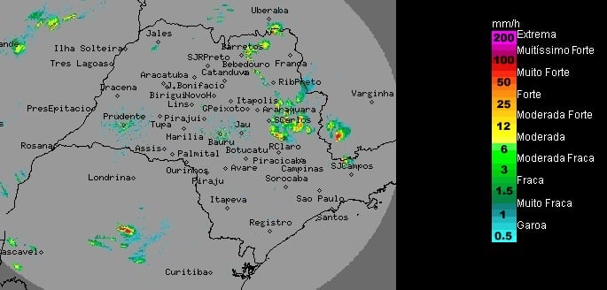 As chuvas voltaram à região de Rio Claro nesta tarde de quarta-feira (6) com um volume considerável. De acordo com a estação Ceapla/Unesp, foram registrados 12 milímetros nesta tarde, volume maior que o registrado ao longo de todo o mês de setembro, que foi de sete milímetros. Como mostra o radar Ipmet/Unesp, a instabilidade está concentrada somente na região hoje, mas para amanhã, quinta-feira (07), a previsão é de chegada de uma frente fria para todo o estado de São Paulo, o que pode então prorrogar o período chuvoso.
