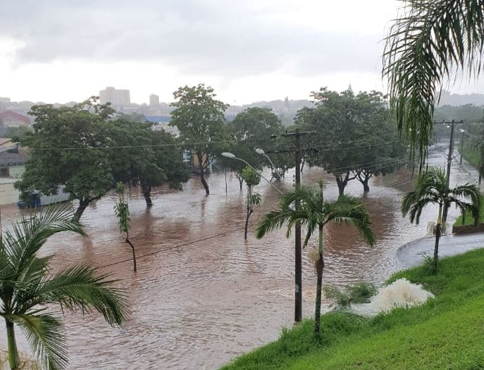 A Defesa Civil informou que o volume de água registrado no intervalo de 1h foi de 90 milímetros – o que fez o Ribeirão das Furnas na Avenida Dona Renata (Marginal) transbordar, travando o trânsito da cidade.