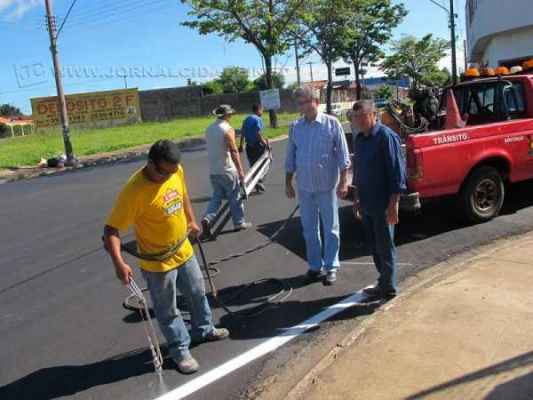 Encerrada a primeira etapa, que consistiu na aplicação do novo pavimento asfáltico, o trabalho entrou na fase final com o serviço de pintura. O prefeito Du Altimari e o vereador Júlio Lopes acompanharam o início do serviço que tem como objetivo principal restabelecer a sinalização horizontal, também conhecida como sinalização de solo, na avenida.