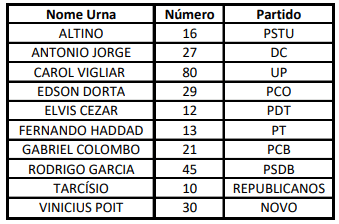 CANDIDATOS A DEPUTADO ESTADUAL POR SÃO PAULO