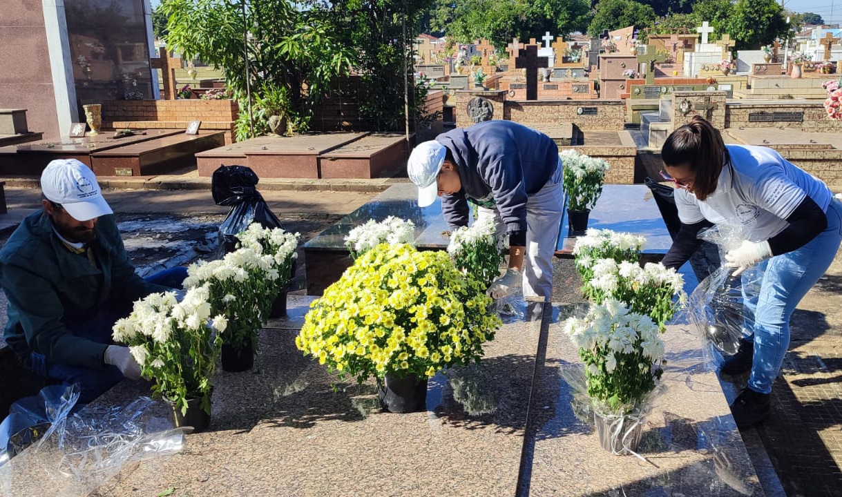 Entre as ações esteve a remoção de embalagens plásticas dos vasos de flores levados pelos visitantes a túmulos no fim de semana, por conta do Dia das Mães.
