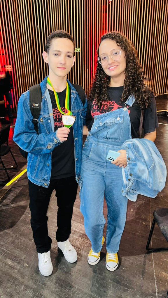 Na última sexta-feira (14), os alunos da oficina de Dança e também participantes do ‘Núcleo Fazendo Arte’, Vitória Francino e André Alves, acompanhados pelas professoras Amanda e Thamara e o coordenador Diego Amaral, participaram do 8º Festival Internacional de Danças de Goiás.