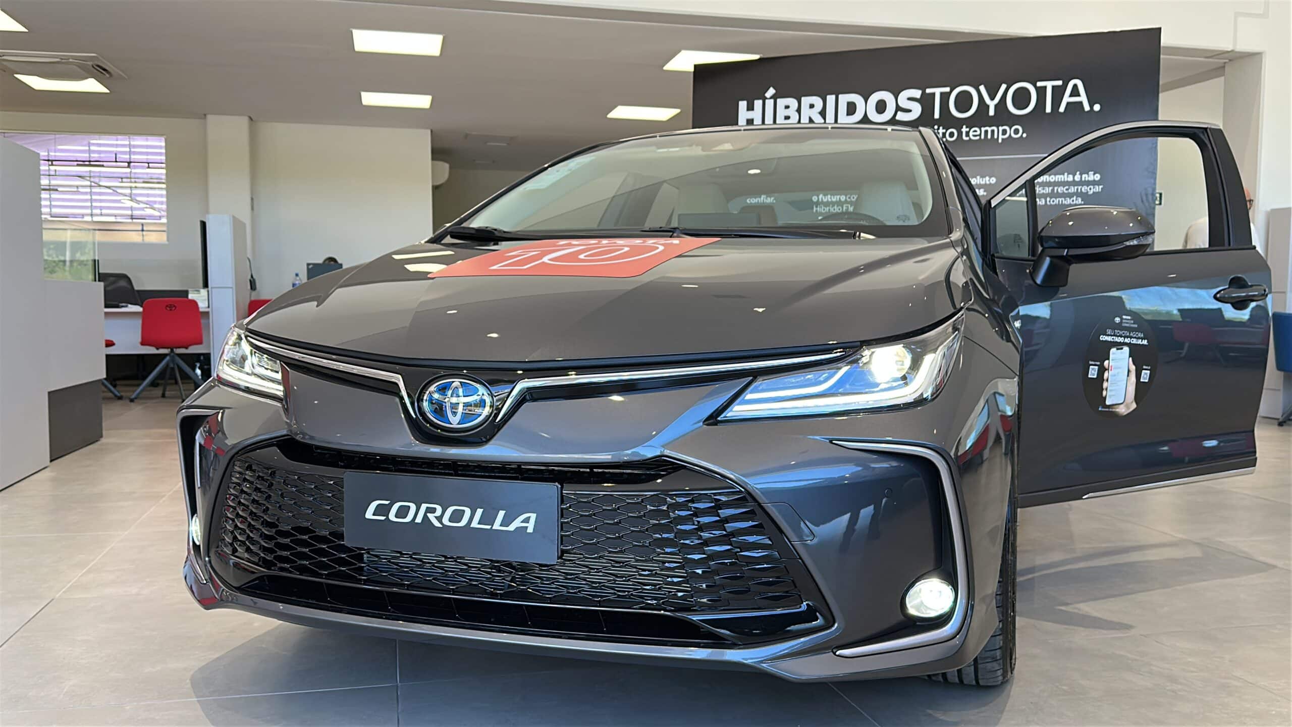 Mas os benefícios vão além, o modelo é a versão mais completa da Toyota, tem banco elétrico do motorista, teto solar, parte interna com acabamento sofisticado, 7 airbags, sistema de piloto automático com acompanhamento de velocidade, câmbio ECVT de 10 velocidades, painel totalmente digital com várias funções, tela de 10 polegadas, conectividade sem cabo, ar condicionado dual zone, carregador por indução. “Tem motor 1.8 a combustão e dois motores elétricos trabalhando juntos com 75 cv, uma força em conjunto para dar maior potência ao carro. É o único híbrido no mundo que é flex, ou seja, álcool e gasolina com motor a combustão e dois motores elétricos, esse modelo só tem no Brasil, um carro bem completo da categoria”, comenta Pazin.