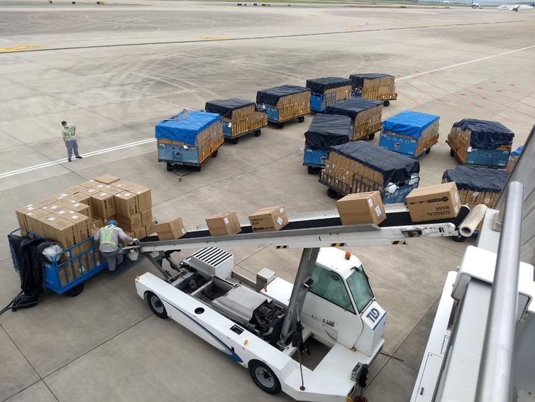 O avião foi fretado pelo Ministério da Infraestrutura, que vai contratar mais de 40 voos para transportar ps volumes para os destinos finais. A carga de 7,942 milhões de máscaras cirúrgicas de três camadas foi transportada em aeronave de passageiros Boeing-777, que aterrissou no Aeroporto Internacional de Guarulhos, em São Paulo.