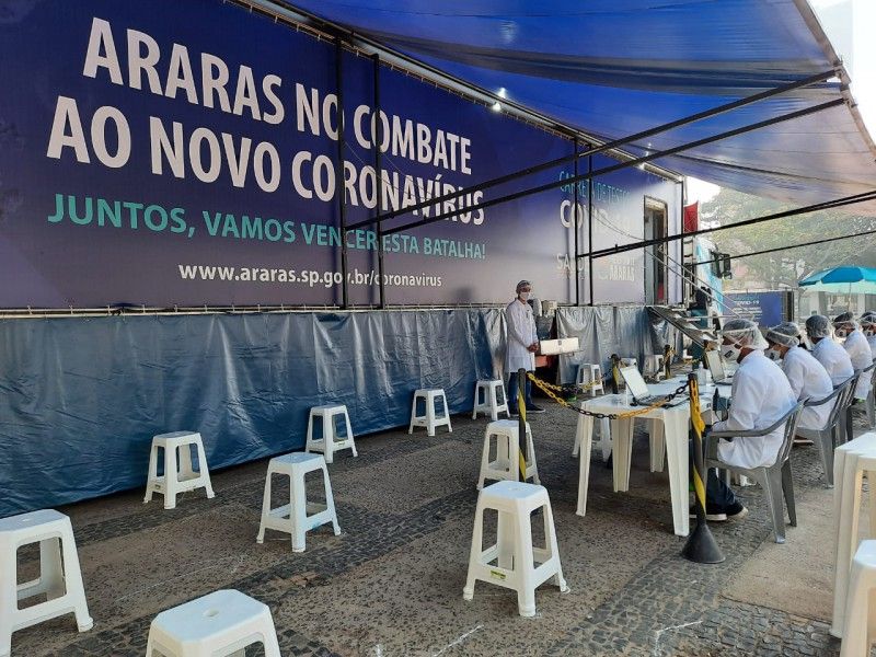 A carreta itinerante contratada pela Prefeitura de Araras para a realização de exames de covid-19 está instalada na Praça Jorge Assumpção, zona leste da cidade, onde fica até o próximo sábado (31).