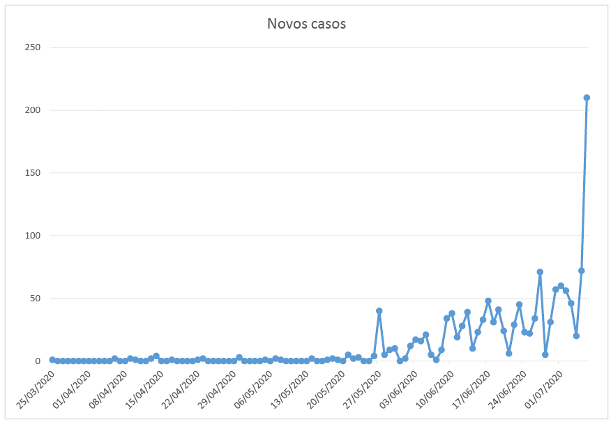 De acordo com a Fundação Municipal de Saúde, dos novos casos positivos, dois estão hospitalizados e 208 em isolamento domiciliar. O número de pessoas recuperadas da doença aumentou em 56, chegando a 616. Há um óbito em investigação.