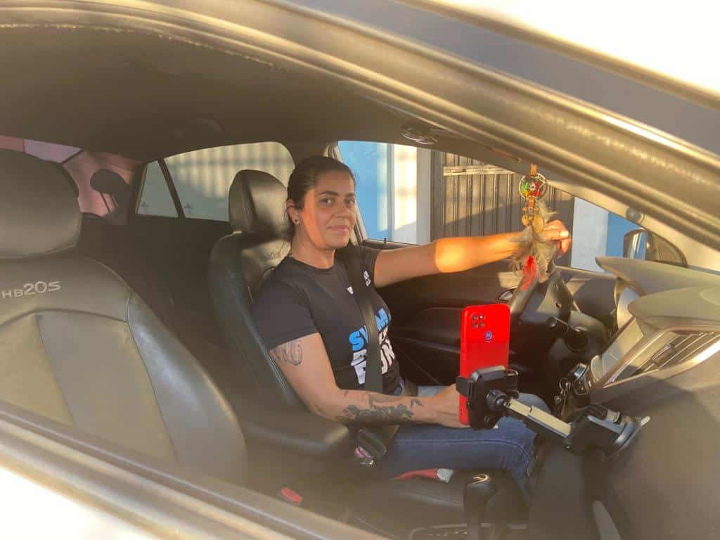 Em Rio Claro, Michele Cristina Borges, de 37 anos, tem sua principal fonte de renda através do trabalho que exerce como motorista de aplicativo.