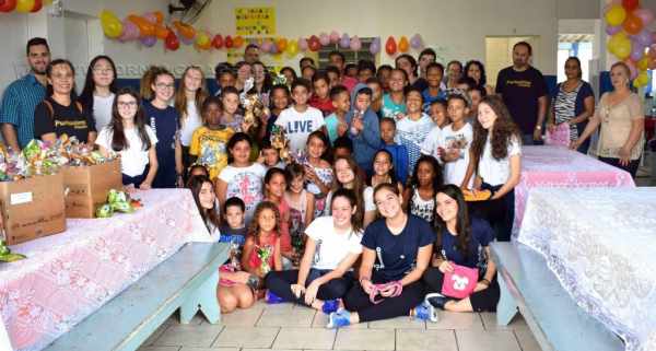 Os ovos foram entregues por alunos do colégio Puríssimo Coração de Maria em parceria com o Interact Clube Cidade Azul, ligado ao Rotary Clube Cidade Azul.