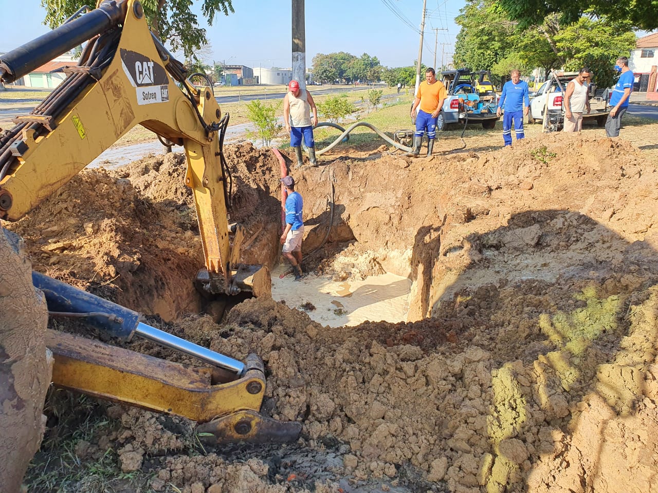 O Daae (Departamento Autônomo de Água e Esgoto) de Rio Claro está fazendo novo reparo emergencial em adutora de 250 milímetros que se rompeu na Avenida M-33 com a Avenida Brasil, no bairro Jardim Floridiana.