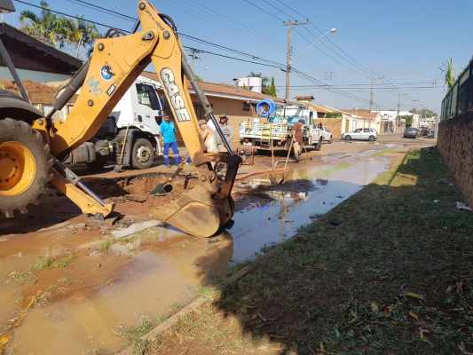 Uma equipe de manutenção da autarquia já está no local realizando os trabalhos necessários para sanar o problema e, para isso, foi necessário interromper o abastecimento de água da região e interditar trechos da Avenida 42, entre as Ruas 6 e 8, e da Avenida 40 com a Rua 7.