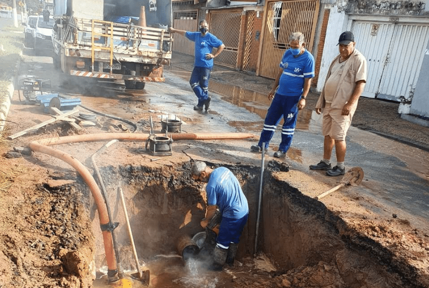 O Daae (Departamento Autônomo de Água e Esgoto) de Rio Claro está fazendo reparo emergencial em rede de abastecimento de 200 milímetros que se rompeu na Avenida Perimetral, entre as ruas 12 e 13, no bairro BNH, próximo ao reservatório de água da Avenida 40.
