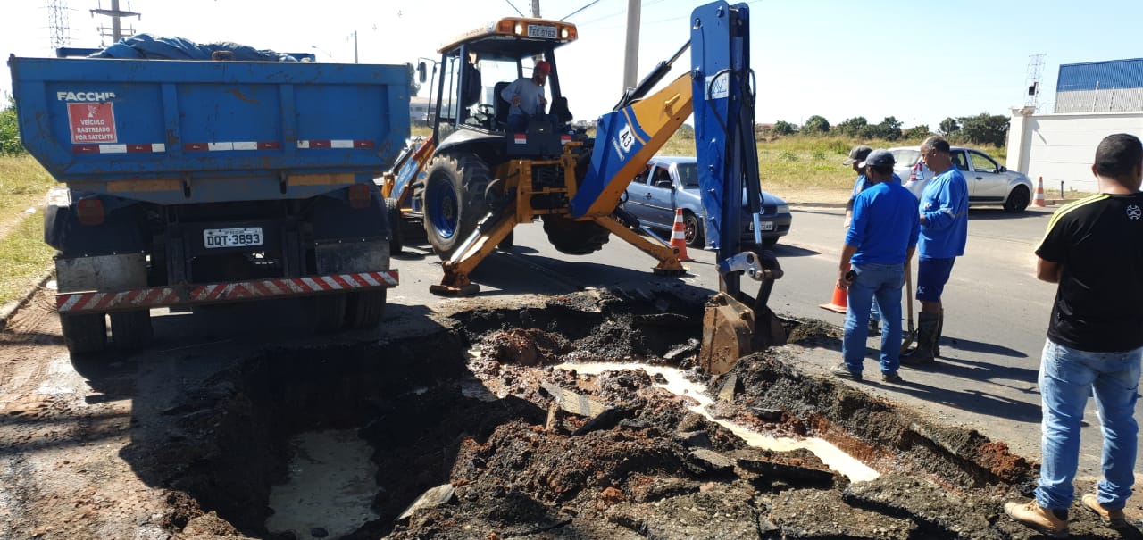 O Daae (Departamento Autônomo de Água e Esgoto) de Rio Claro está fazendo reparo emergencial em uma das redes de abastecimento que se rompeu neste domingo (10 de maio de 2020), na Estrada dos Costas, no Jardim Esmeralda, em frente ao condomínio Reserva das Palmeiras.