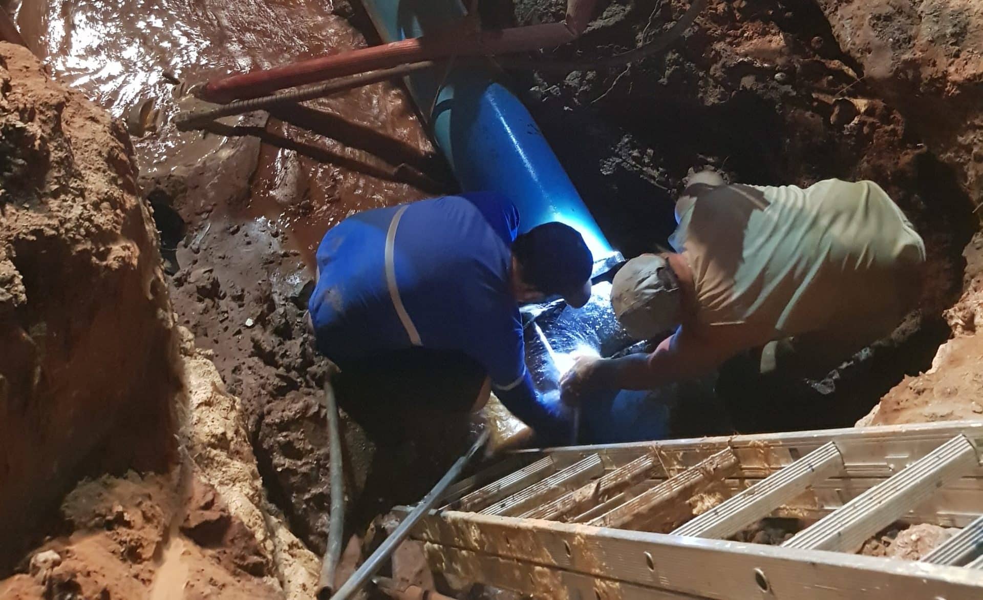 A rede de distribuição de 300 milímetros que abastece a região também apresentou problemas e por isso um reparo na junção de adutoras, que fica próxima ao reservatório, foi realizado durante a noite de segunda-feira (24).