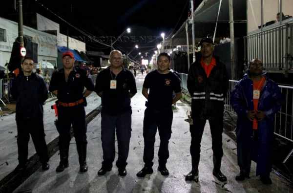 Equipe da Defesa Civil que conta com a participação de voluntários na Passarela do Samba