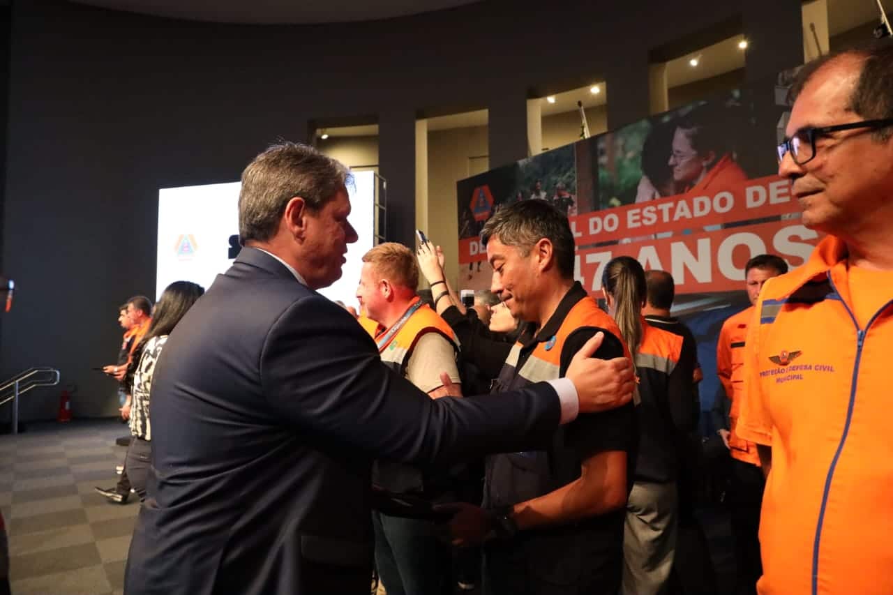 A solenidade marcou os 47 anos da Defesa Civil Paulista e foi utilizada pelo governo estadual para homenagear e agradecer às equipes que colaboraram no socorro e acolhimento às vítimas das chuvas no litoral Norte no início deste ano.