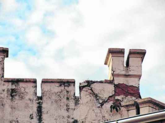 Reboco solto de estrutura situada na parte superior do Mercado Municipal de Rio Claro