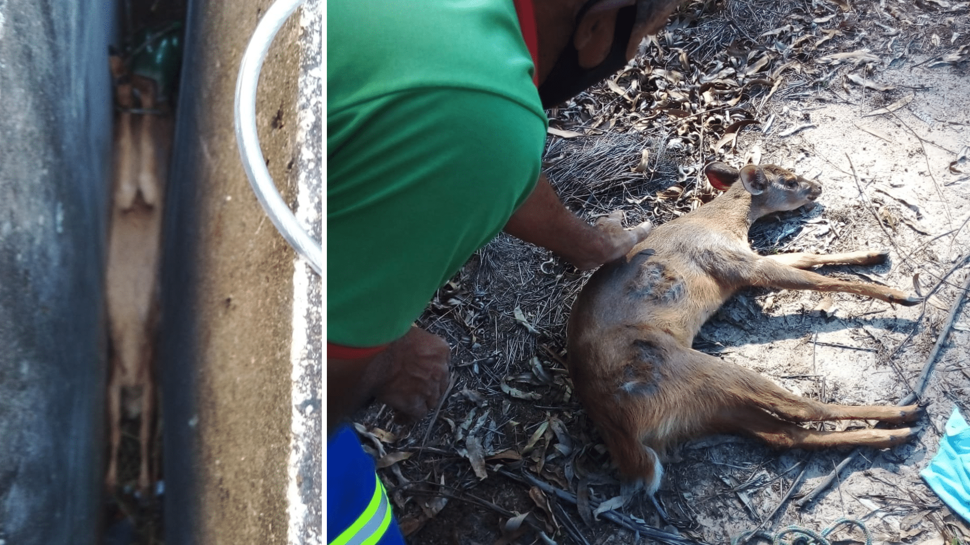A Defesa Civil de Itirapina realizou nesta terça-feira (dia 28) o resgate de um cervo encontrado em uma canaleta de água na rodovia SP-225.