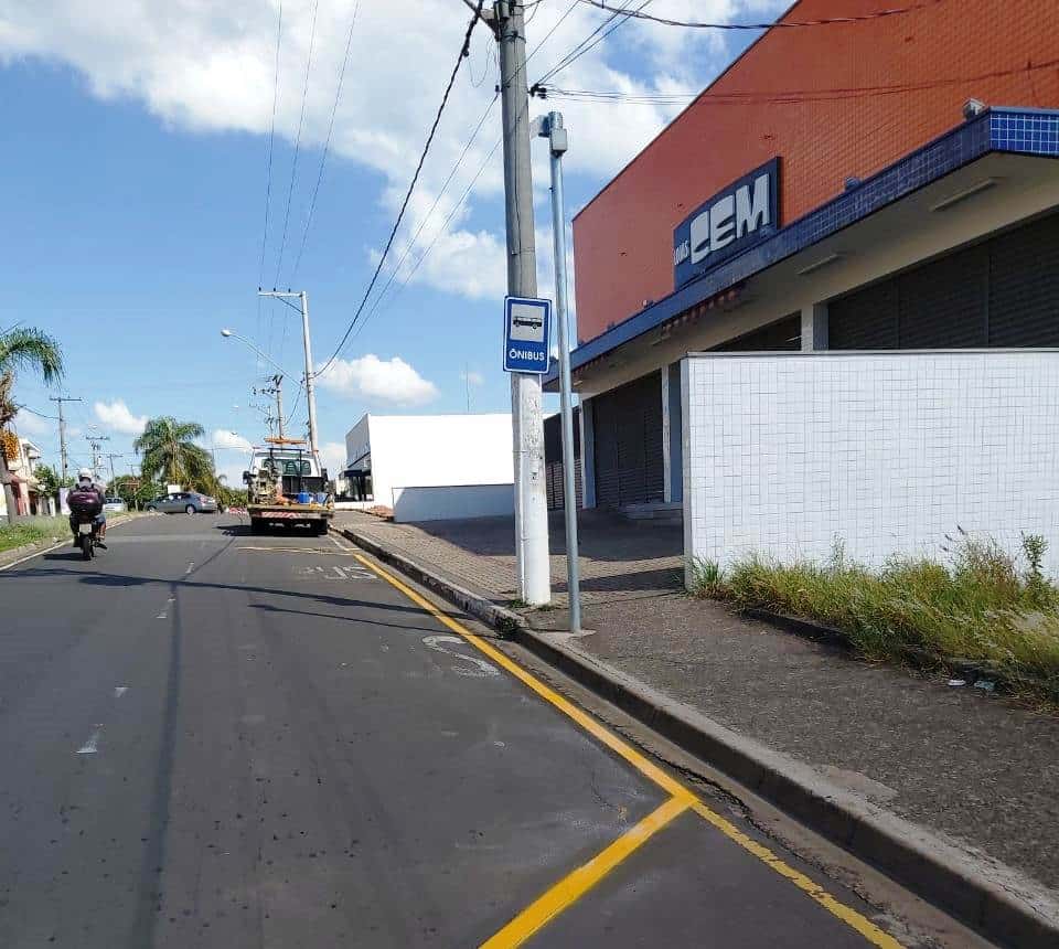 Na Rua6 do bairro Cervezão foi feita a delimitação da área reservada à parada de ônibus para embarque e desembarque de passageiros.