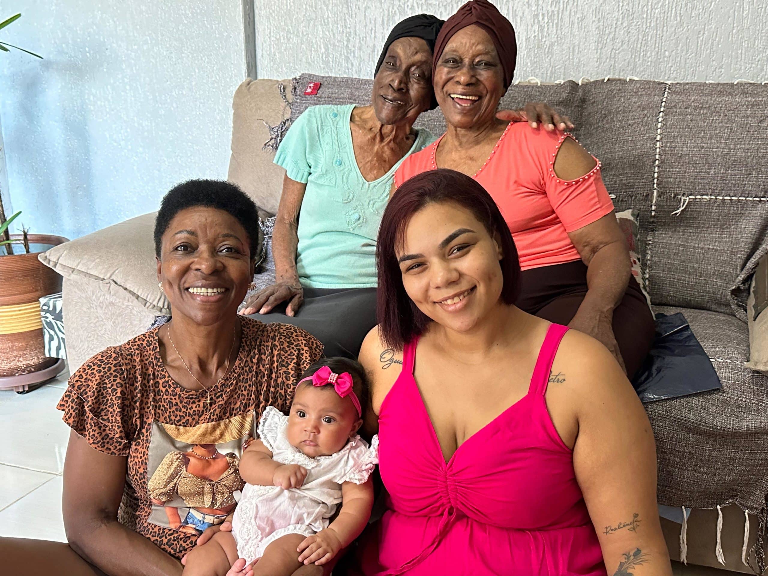 Maria Aparecida Cerqueira, com impressionantes 97 anos muito bem vividos, também demonstrou seu amor por se tornar tia-tataravó. “Eu estou muito feliz, que Deus abençoe poderosamente. É maravilhosa essa família de mulheres, nunca pensei que viria isso”, conclui.