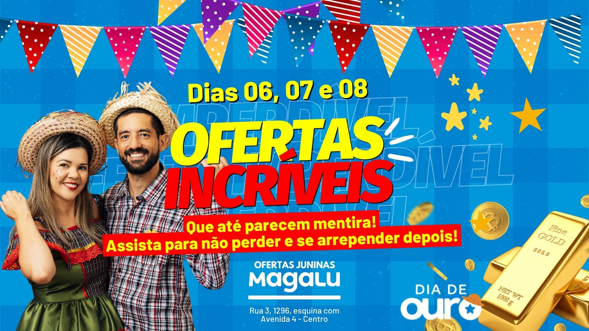 Começa nesta quinta-feira, dia 06 de junho, o Dia de Ouro – Edição Especial Junina na Magalu Rio Claro. Serão três dias repletos de ofertas com descontos exclusivos e atrações temáticas. Durante os dias 06, 07 e 08 de junho, os clientes poderão aproveitar liquidações em diversas categorias, incluindo telefonia, imagem, eletrodomésticos e móveis. Entre os produtos em promoção estão panela de pressão, travesseiro, smart TV, PlayStation, celular, tanquinho, geladeira e pneus importados.