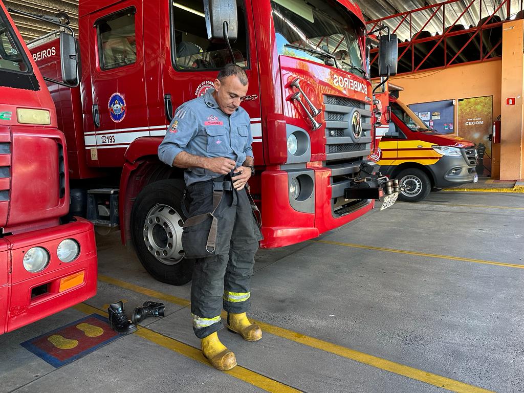 Parceiro do sargento Bucioli na Prontidão Amarela em Rio Claro encontramos André Luiz de Marcos (soldado De Marcos), 33 anos, e que há quatro integra a corporação. Ser bombeiro não era uma meta, mas o curso da vida mostrou a ele um caminho de que se orgulha e tem muita gratidão hoje: “Eu venho da aviação e entre 2017 e 2018 eu fui trabalhar no Rio de Janeiro e minha esposa acabou engravidando. A distância naquele momento era um empecilho e ela me disse uma frase que me marcou muito: ‘a gente casa para estar junto’ e ela me pediu que eu tentasse uma vida mais próxima e eu não pensei duas vezes. Porém no meu meio de trabalho não tinha emprego na região e eu rapidamente comecei a procurar por concursos e ingressei na carreira militar e nos Bombeiros em 2019. De lá pra cá eu posso dizer que me redescobri”, afirma De Marcos.
